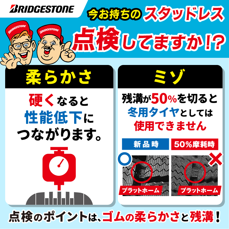 もちろんスタッドレスタイヤのチェックもやります(/・ω・)/
